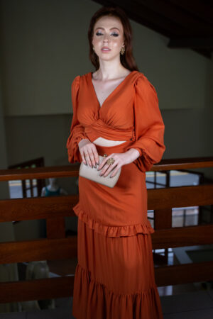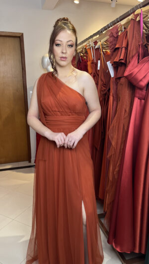 Vestido Tomara que Caia com Fenda, Saia Dupla e Bolsos