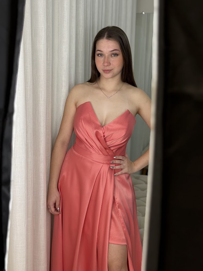 Vestido Tule com Paetês, Fenda e Alças de Laço