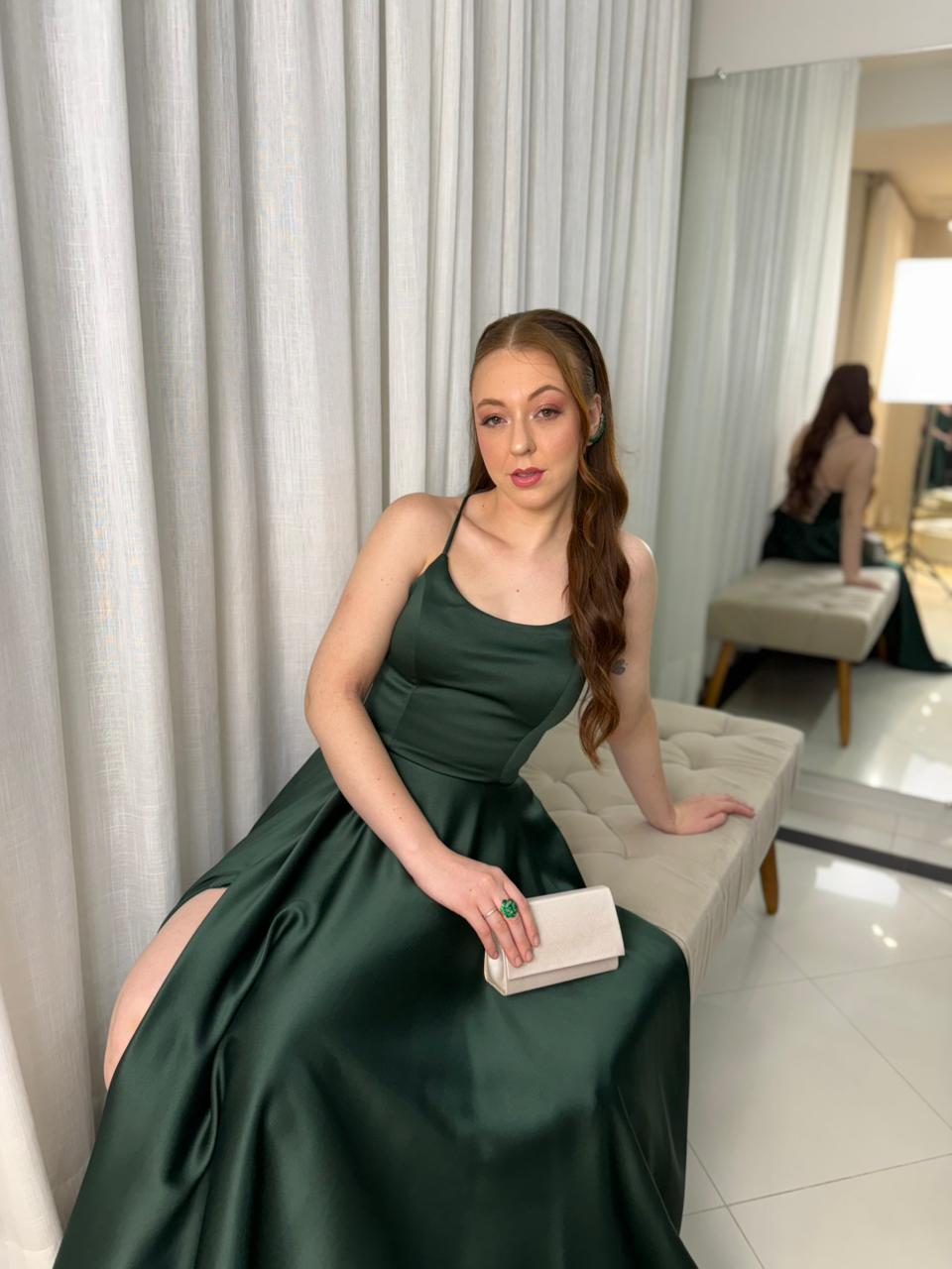 Vestido Alças Finas com Fenda, Costas Trançadas e Bolsos
